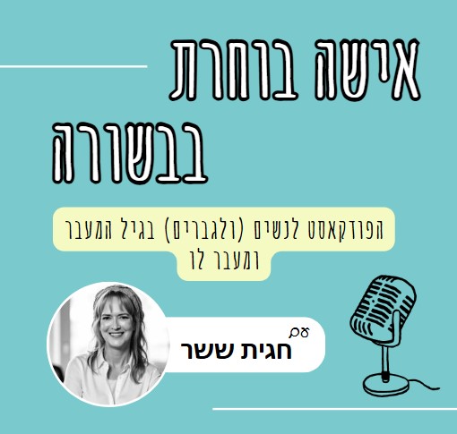 “אישה בוחרת בבשורה” הוא פודקאסט המיועד לנשים (וגם לגברים) בגיל המעבר שמציג את ההתמודדות, האתגרים, וגם את ההזדמנויות הרבות שיש בגיל הזה, את האפשרות לשנות ולהשתנות ולהינות מצמיחה והתחדשות.
